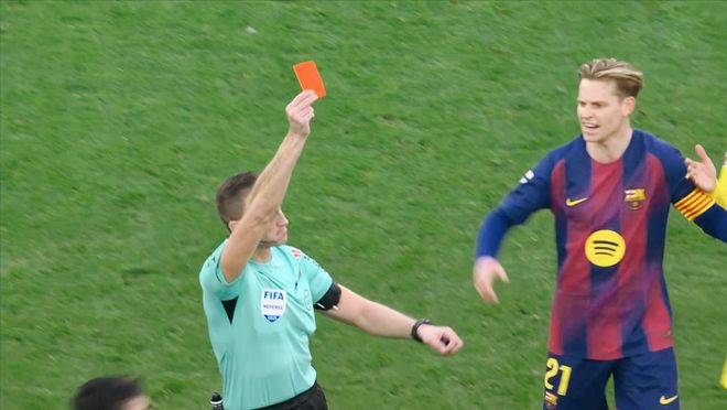 落后的比利亚雷亚尔继续坚决执行中场的强硬防守,并且快速反击的策略,巴萨的整体防守非常被动。中后场的传递出现了多次低级失误,场边的弗里克也是无奈的不停呐喊指挥。连续猛攻的比利亚雷亚尔,在第38分钟遭遇重创,维加直接凶狠铲倒亚马尔,被主裁判直接红牌罚下!而且引发了巴萨众将的强烈不满,险些引发冲突。半场比赛结束,巴萨暂时一球领先。