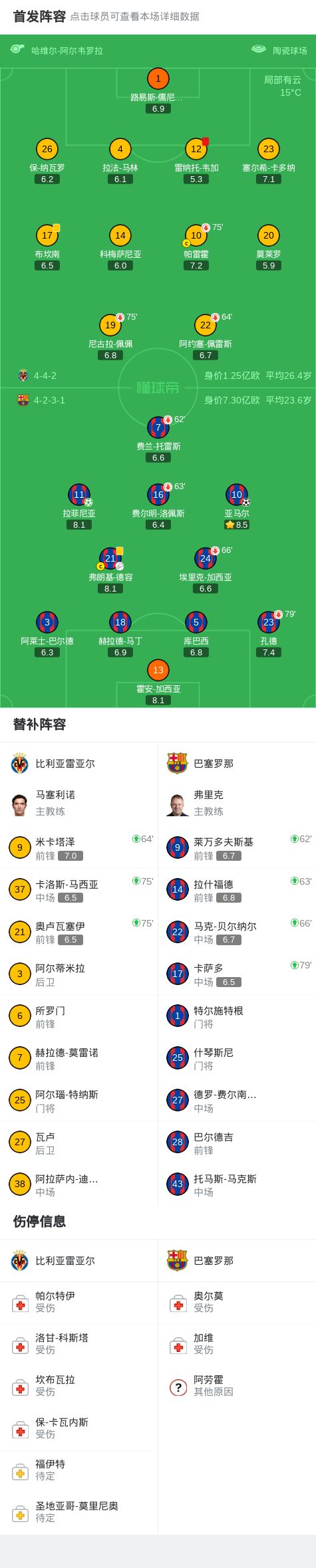 北京时间12月21日西甲日报,西班牙足球甲级联赛第17轮,比利亚雷亚尔坐镇主场迎战巴塞罗那。比赛开始后,巴塞罗那球员多次失误,但巴塞罗那率先打破僵局,拉菲尼亚主罚点球命中,帮助球队取得领先。此后,比利亚雷亚尔遭遇打击,雷纳托-韦加飞铲亚马尔被红牌罚下,球队陷入人数劣势。下半场,巴塞罗那持续施压,弗朗基-德容送出关键助攻,亚马尔接球后冷静破门,为球队扩大比分。最终,全场比分定格在比利亚雷亚尔 0-2 巴塞罗那,客队全取三分。