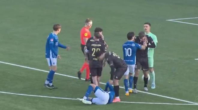 除开留在国内的球员,咱们也有留洋的球员。像20岁的王博豪,就在荷兰乙级联赛邓伯什队效力。近日的一场联赛中,王博豪更是制造了“奇观”!发生了什么事?请接着往下看!荷乙联赛第21轮,邓伯什在主场迎战维特斯。比赛第70分钟,王博豪替补出场。作为年轻球员,有出场机会肯定是很激动。第84分钟,邓伯什前场进攻。王博豪在禁区前沿拼抢的时候手上拉人。主裁判响哨了!或许是王博豪没有听见。裁判响哨之后,王博豪继续进攻并且成功破门。王博豪在破门之后,对手的球员故意撞了一下王博豪!随后王博豪倒地。