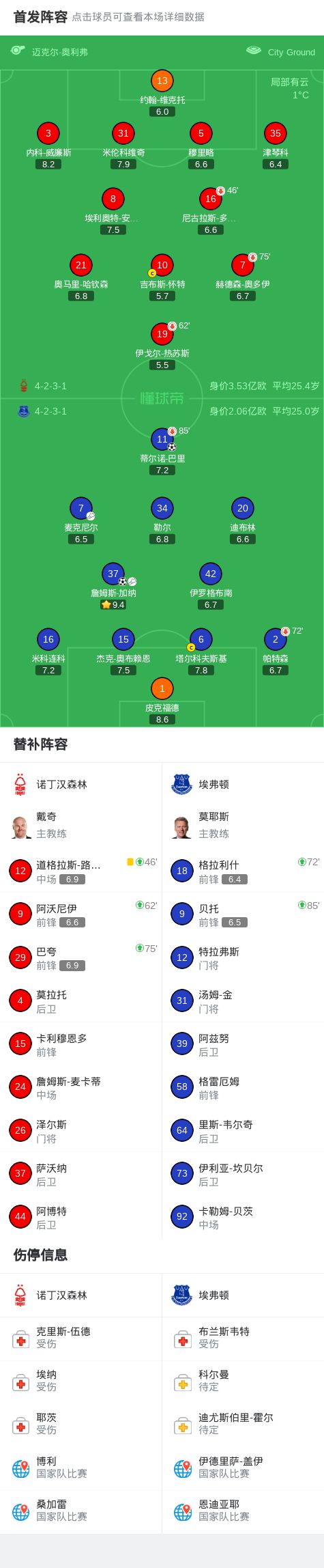 北京时间12月31日英超日报,英格兰足球超级联赛第19轮,诺丁汉森林主场迎战埃弗顿。上半场,麦克尼尔助攻加纳推射破门;下半场,加纳精准斜塞助攻巴里推射得手。全场比赛结束,最终诺丁汉森林0-2不敌埃弗顿。