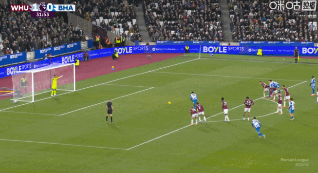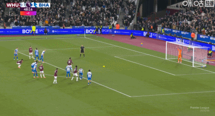 半场:西汉姆联2-1布莱顿,帕奎塔传射+送点,维尔贝克点球二中一