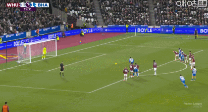 第45+4分钟,邓克手球送点,帕奎塔操刀命中,西汉姆联2-1!