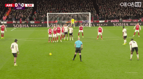 足球日报01月09日播报讯 英超第21轮阿森纳vs利物浦,第62分钟,索博斯洛伊主罚任意球,一脚远射直接抽飞!