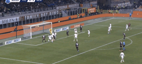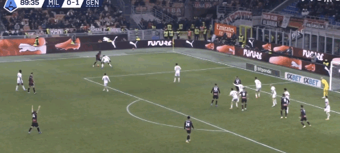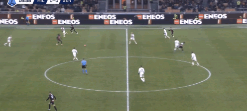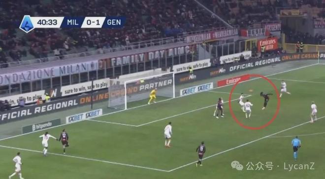 38:15,米兰左路攻势,莱奥背身不停球斜塞给普利西奇,但被热那亚中卫厄斯蒂高预判卡位,随后美国队长反抢犯规。
