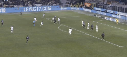 顶在高位准备背身接球的是拉比奥特,远端弗法纳正在插上,而莱奥和普利西奇都回撤了。