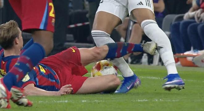 北京时间1月12日西甲日报,在西班牙超级杯的决赛中,巴塞罗那最终依靠拉菲尼亚的梅开二度以及莱万多夫斯基的进球3-2击败皇家马德里,成功卫冕该项赛事的冠军。比赛最后时刻,弗朗基-德容曾因为蹬踏姆巴佩被出示红牌罚下。