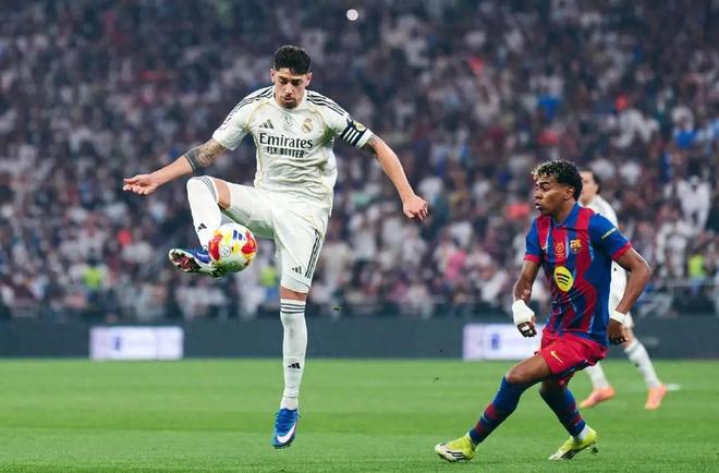 比赛开始,双方战术意图便昭然若揭。弗里克为巴萨量身打造的边中结合体系,凭借德容与佩德里的中场轮转牢牢掌控节奏,前30分钟65%的控球率就是最好证明。18岁的亚马尔在左路频频发难,即便面对卡雷拉斯的精准卡位也毫不怯场。皇马则因后防伤病严重,被迫让中场球员回撤补位,阿隆索只能寄希望于维尼修斯的速度冲击防线,巴西边锋第13分钟的犀利突破一度撕开巴萨防守,但单靠边路突袭难以撼动红蓝军团的整体防线。