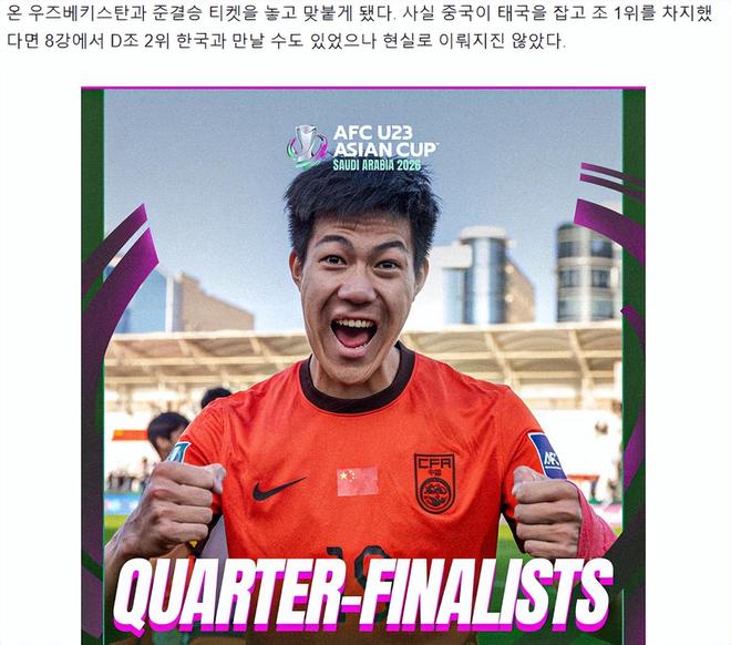 “然而,中国国内对未能与韩国队交锋感到失望。四分之一决赛对阵结果公布后,中国媒体甚至警告称:我们遇到了一支比韩国队更强的队伍!这就是韩国足球令人悲哀的现实,也是前所未有的耻辱。中国不再惧怕与韩国直接对抗,某种程度上是必然的结果。去年三月,韩国U23国家队0-1负于中国队。尽管那是一场友谊赛,而且当时还没有正式的主教练,但这场失利仍然令人震惊。即便李珉成接手球队后,韩国队在去年11月的熊猫杯中仍以0-2负于中国队,他们在比赛中的表现也明显逊色。”
