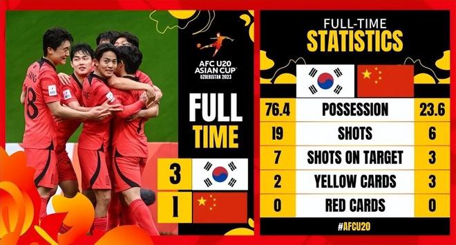 淘汰赛遇到韩国队,U20国青也是先拔头筹,可惜没能守住领先优势,在加时赛中被对方连入2球,被淘汰出局。
