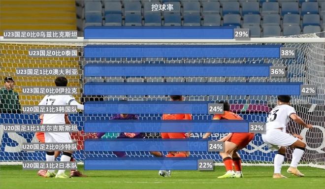 这个数据在来到U23带队时也没有多少变化,本届U23亚洲杯,球队的控球率也就在36%左右。之所以比亚青赛时好,是因为球队不少球员已经打上了中超,身体对抗上不吃亏。