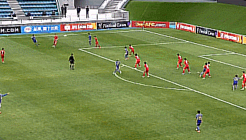 这一次也是一样的道理,左边中卫贺一然拿球后突然起速摆脱,随后送出直塞。中卫能这样处理球,就能减轻中场的负担。