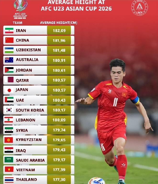 从统计数据看,本届U23亚洲杯上,我们的球员平均身高达到181.96公分,接近1米82,在所有球队里排名第二,仅次于伊朗队。