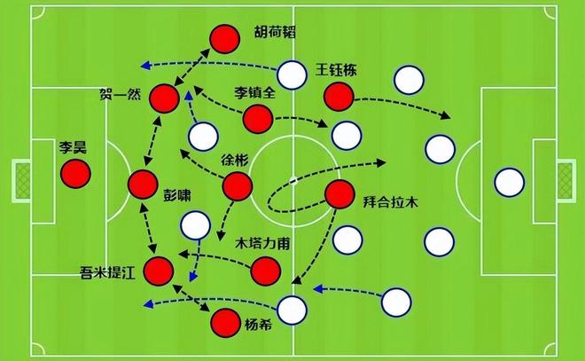 就像是这一次,中卫吾米提江拿球的同时,后腰徐彬去到右边路,原本右边翼卫的杨希前插到很靠前的位置。