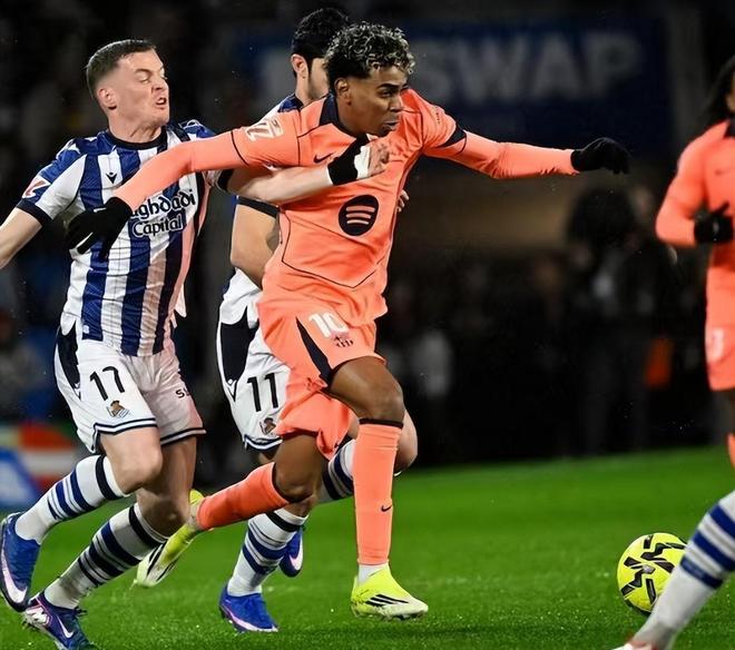 领头羊巴萨吃到了近两个月以来的首场败仗,客场1-2不敌皇家社会。这一场比赛,巴萨是实力占优的一方,开场不到1分钟的时间,奥亚萨瓦尔的进球就让巴萨惊出一身冷汗,好在越位在先进球无效。随后巴萨稳住阵脚,一波波攻势威胁皇家社会,但是费尔明、德容、亚马尔的进球都因为越位被吹掉。第32分钟场上0-0的比分终于被改写,格德斯传中,奥亚萨瓦尔在后点左脚凌空抽射破门。