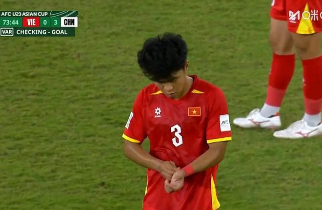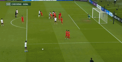 王钰栋主罚吊禁区,对方3号解围,正好打在了彭啸的肩膀上,彭啸顺势一拱,皮球钻进了死角,主裁判第一时间判进球有效,VAR提标中国队有球员越位在先,主裁判观看回放之后,改判进球无效,比分仍是2-0。