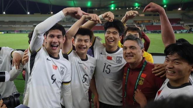 照片,吉达(沙特阿拉伯),2026年1月20日足球日报 1月20日,中国队球员在比赛后与主教练安东尼奥·普切(右二)合影。 当地时间1月20日,在沙特阿拉伯吉达举行的2026年亚足联U23男足亚洲杯半决赛中,中国队3比0战胜越南队,晋级决赛。 记者 王海洲 摄
