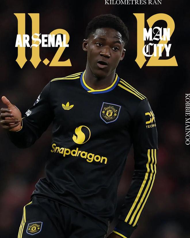 北京时间1月27日英超日报,曼联官推发布了一张关于科比·梅努的主题海报,并写道:“他真情流露,胸前凝聚着团结的力量。 在最近两场比赛中,在所有曼联球员之中梅努的跑动距离更长。”而海报上的数据显示,对阵阿森纳,梅努跑动距离达到11.2km,上一场对阵曼城则有12km。