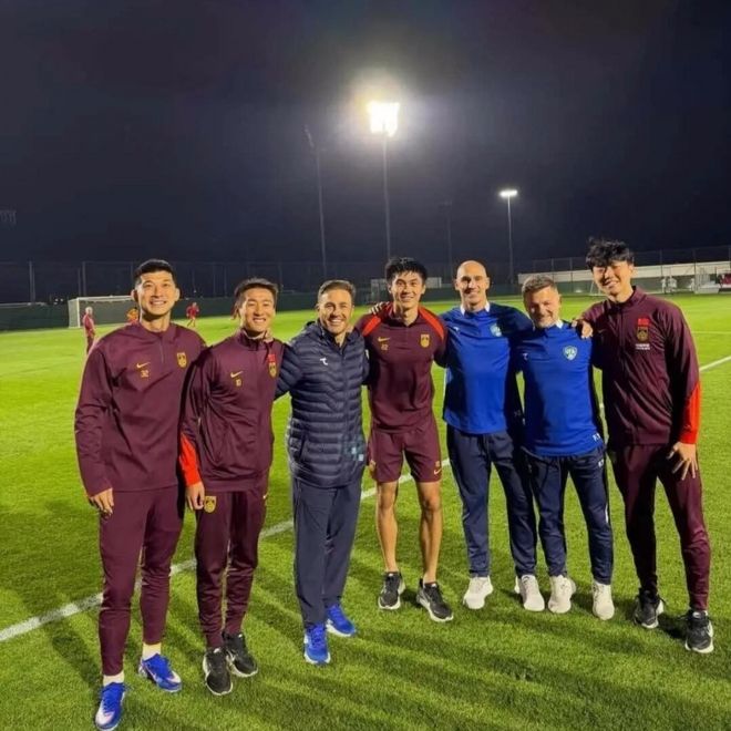 昨天,中国男足热身赛2-2战平中亚劲旅乌兹别克斯坦队。而赛后,4位前广州恒大国脚刘殿座、韦世豪、吴少聪、高准翼也与现任乌兹别克斯坦男足主帅、前广州教头卡纳瓦罗开心合影留念。